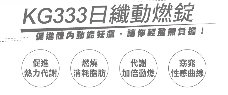 【2.KG333日纖動燃錠】大豆蛋白萃取物(含苯丙胺酸、纈胺酸、蘇胺酸、色胺酸、異亮胺酸、亮胺酸、甲硫胺酸、精胺酸、離胺酸、組胺酸)、L-肉酸、武靴葉、紅花籽萃取(含CLA共軛亞麻油酸)、麥芽糊精。